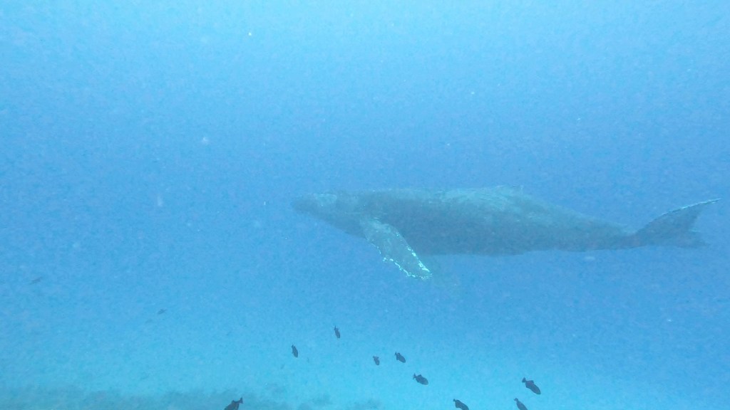 Another day, at the end of the dive, a school of spinner dolphins came by. We watched for about 15 minutes. You can hear the whale song in the background. Apologies for quality of video. I don’t take many videos while diving and this is the first time I have ever edited and combined videos.