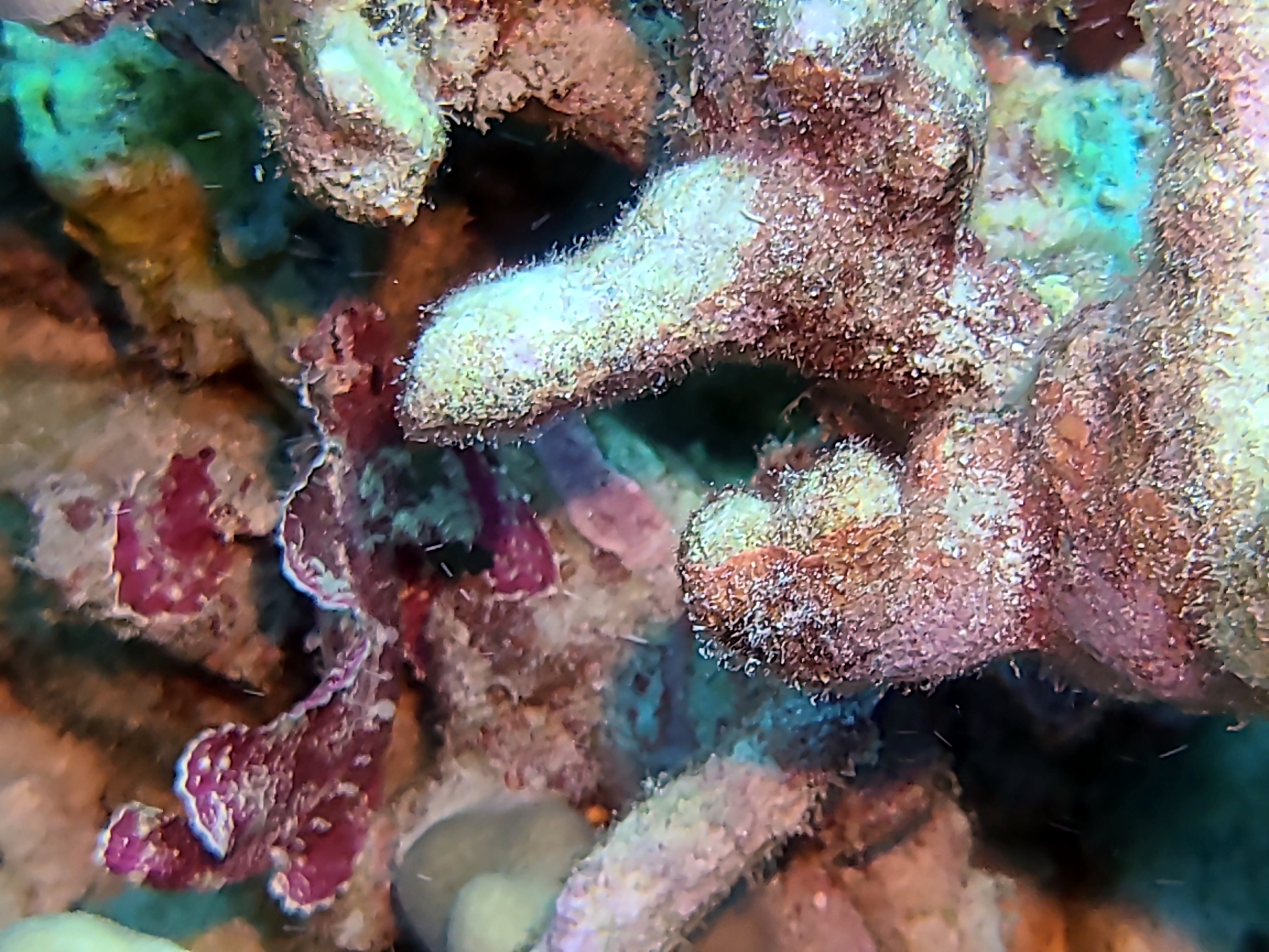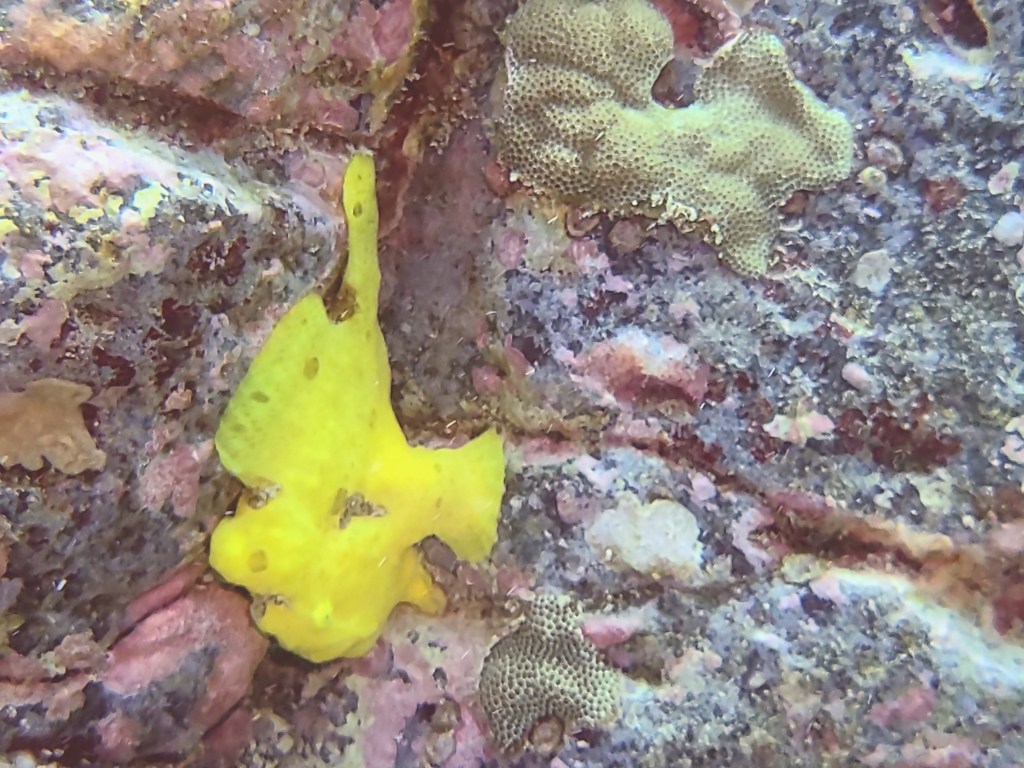 Note that the frog fish also changes a lot. Here is a juvenile which is only an inch or two long: