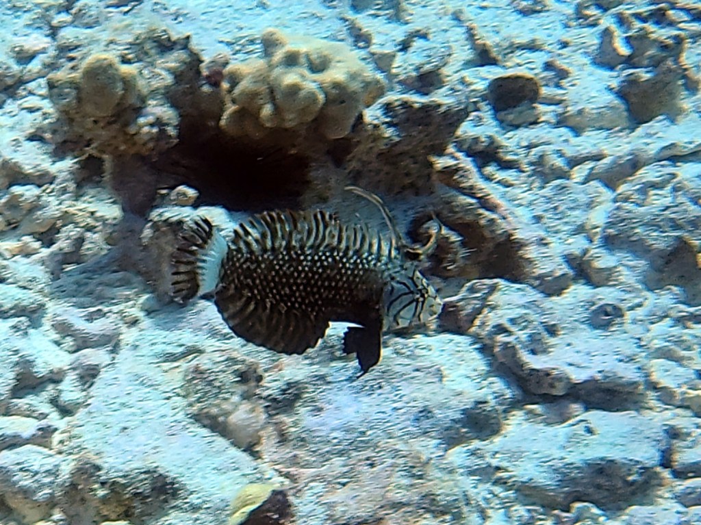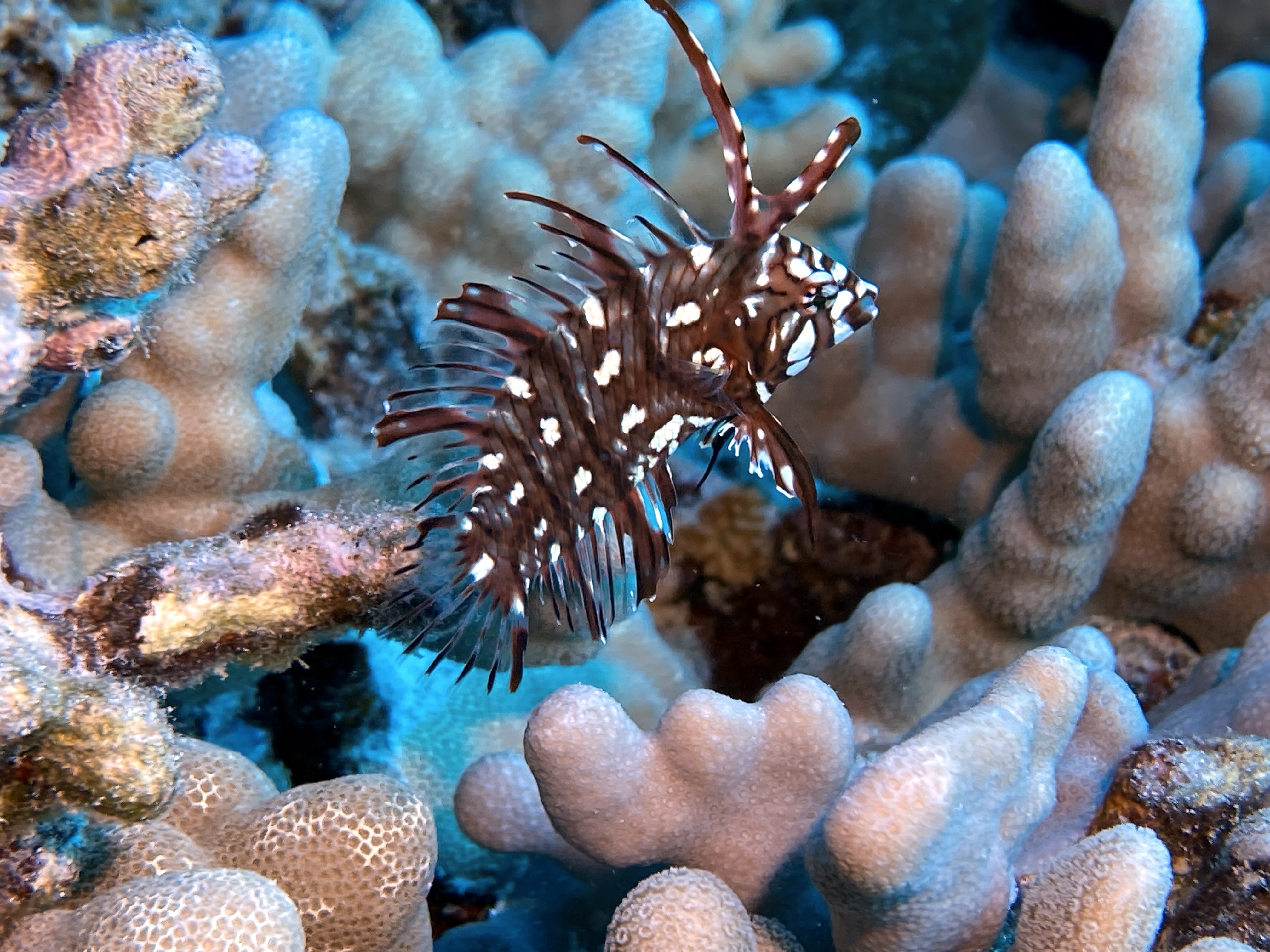 Every dive is an adventure – an opportunity to see the creatures who become like familiar friends as you watch them eat and swim and rest. Sometimes I have fun looking closely at their eyes and decorative colors. Other times, I like to watch how their fins move or they stab at what they eat. For me, diving is also a game – can you find a new fish you have not seen before? Can you find a camouflaged one hiding in the sand or reef? Will you be looking in the right direction when a large creature – a ray or shark or even a whale – swims by? I have fun identifying new fish in the fish books or online and truly geek out over how some change from juvenile to adult.