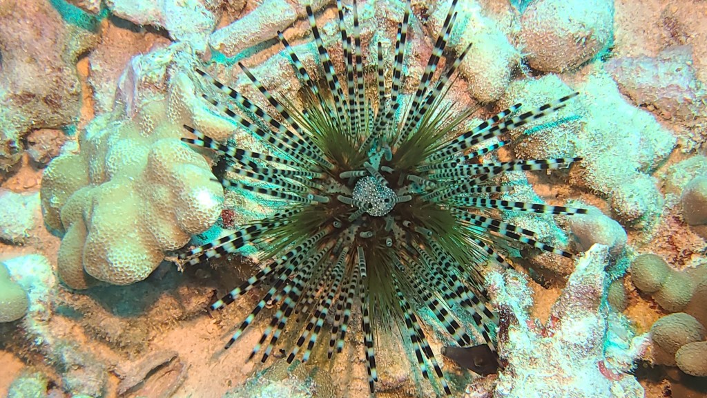 There are lots and lots of sea urchins. I think some are really beautiful.
