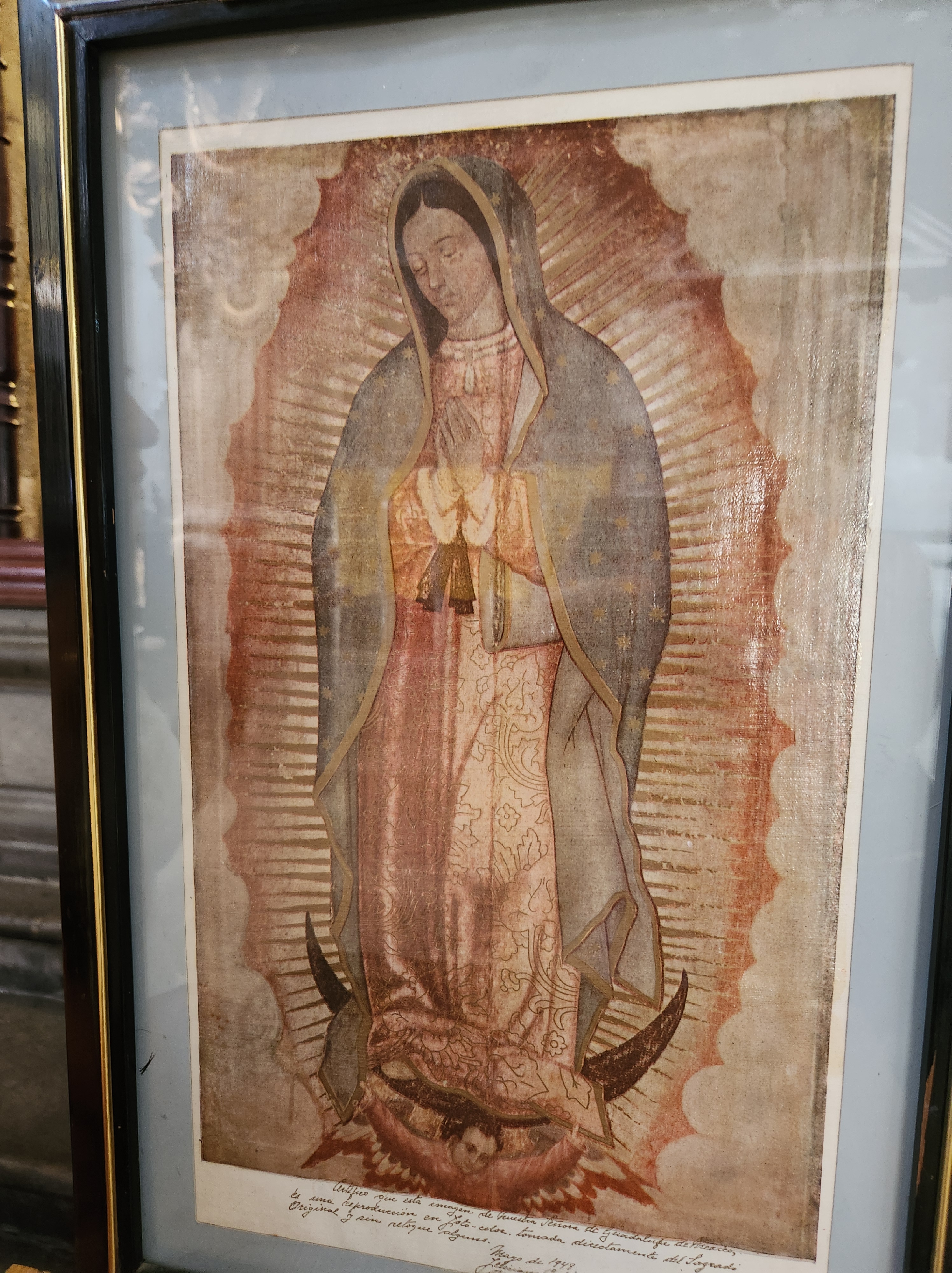 I went with the guide to the Basilica of Our Lady of Guadalupe. The story is of a great miracle where an image of Our Lady of Guadalupe appears on the cape of an indigenous person. As she looked like the native people and there were other symbols that locals understood, it helped the Spanish convert the local people and enlist their help to defeat the Aztecs.