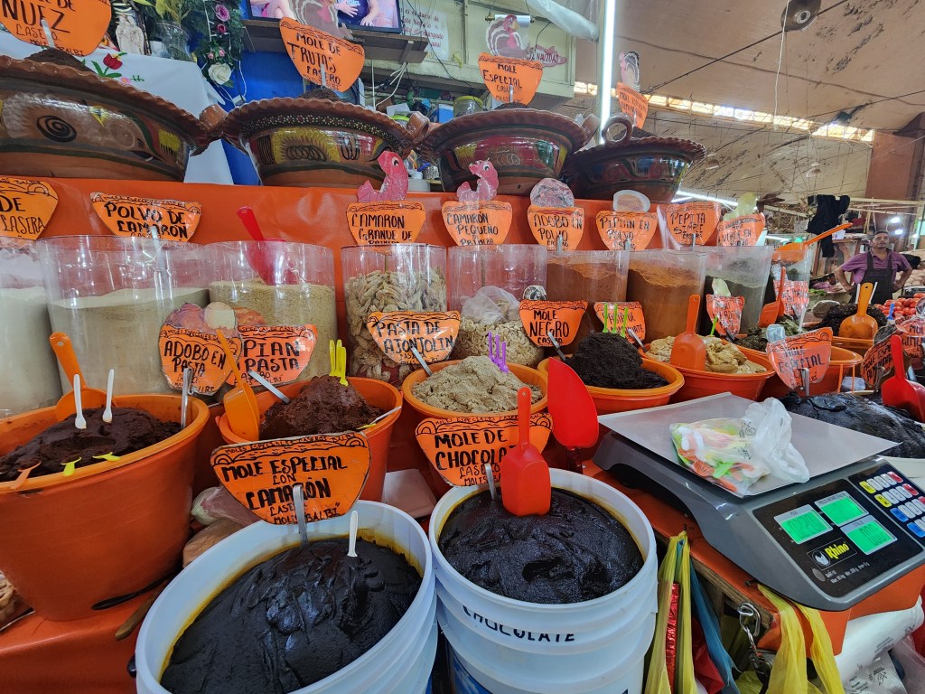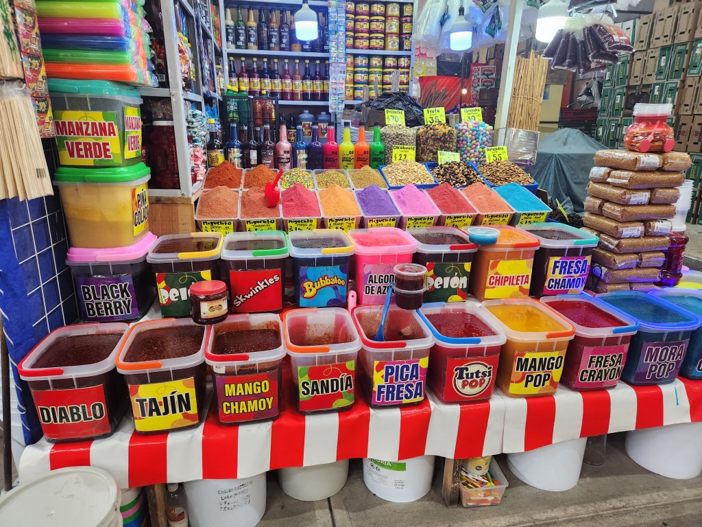 I went to Merced Market twice — once with a guide as I did an “overview of Mexico City” tour and once with the group on a food tasting tour. It is a fun and vibrant place, selling everything. We tasted tacos and tamales, mole and fruit drinks. And bugs.