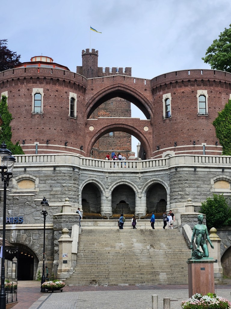 We were in Copenhagen 2 ½ days. I could easily have spent another day – or even two! I loved the energy. We toured the main tourist sites. We also visited the botanical gardens which were lovely. The truck hanging from the tower was for a yearly festival called Distortion which just happened to be going on when we arrived. Big outdoor party.