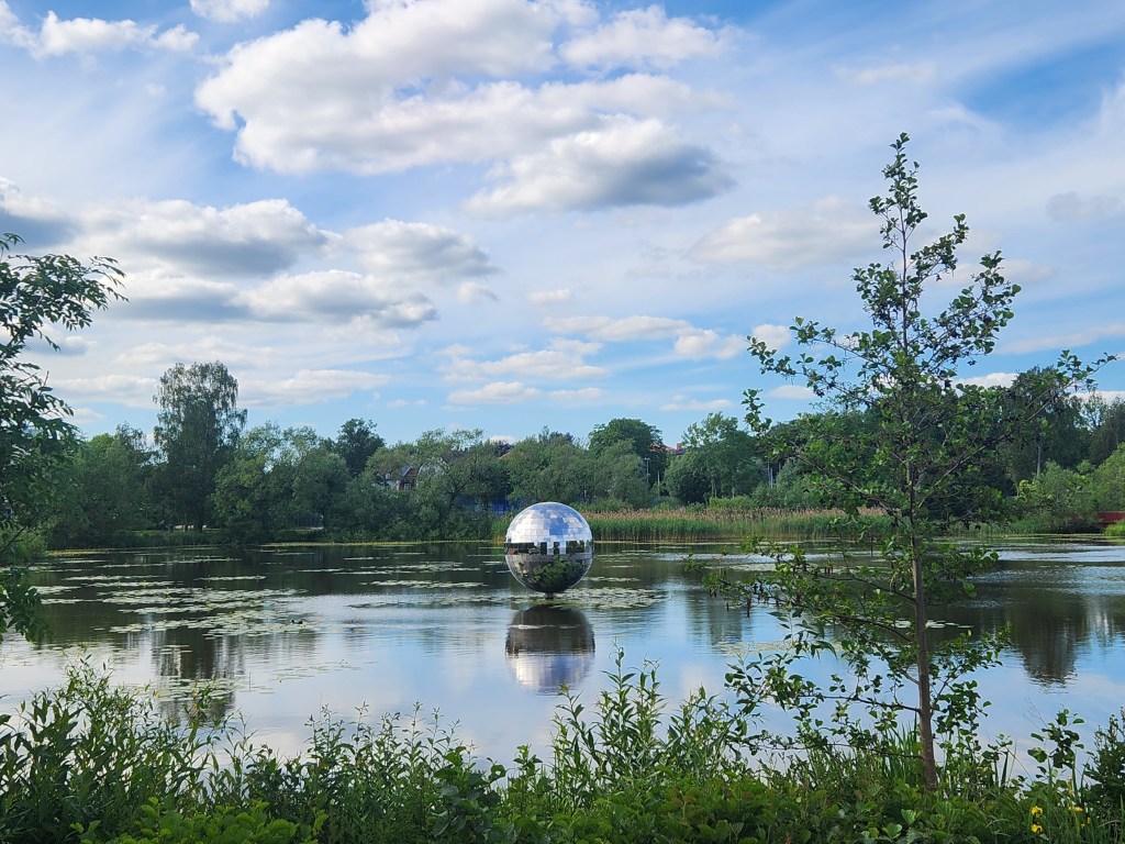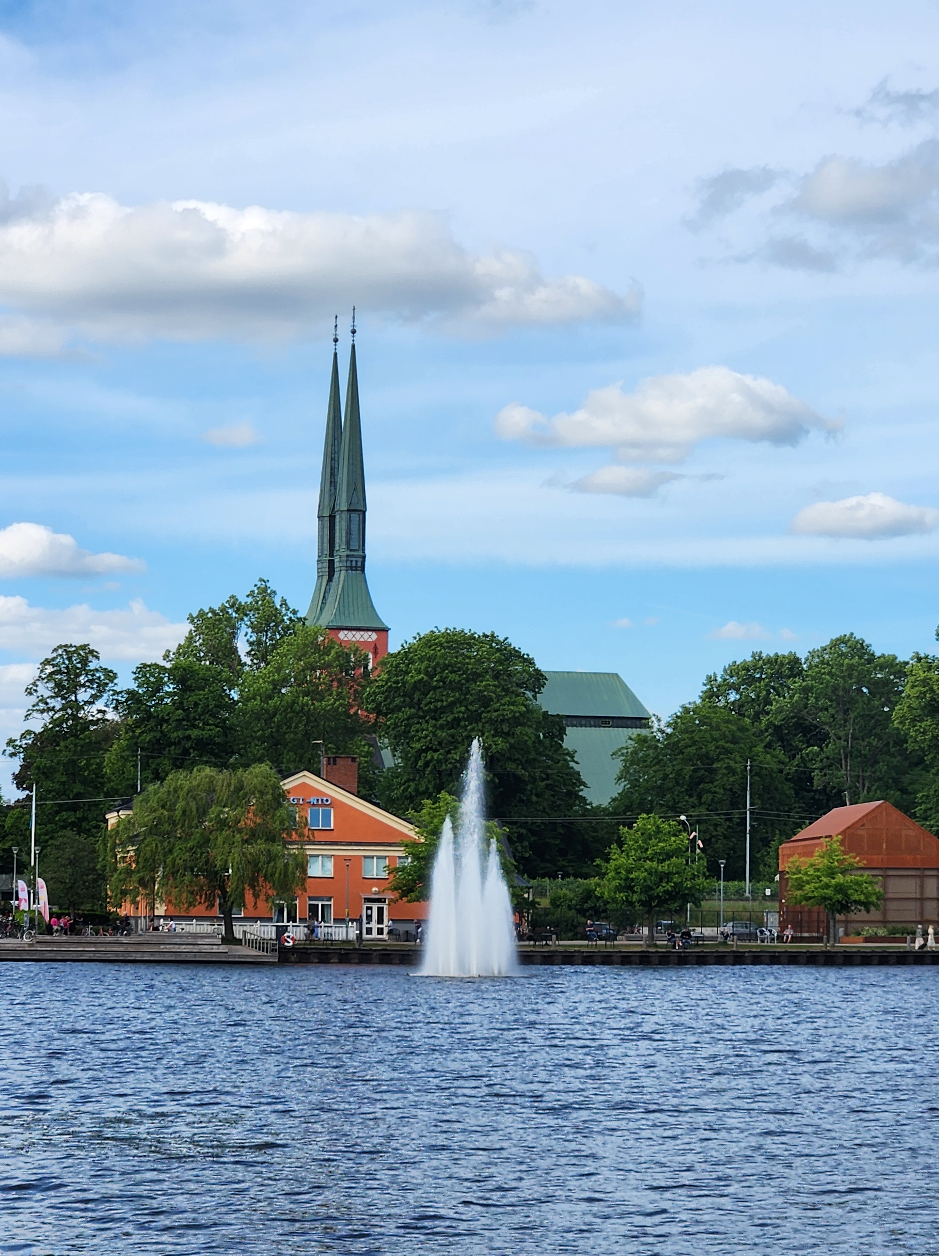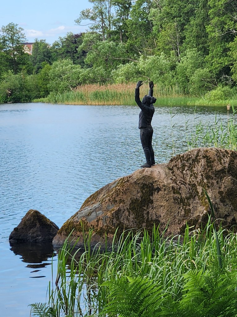 From there, we went to Växjö where we spent two nights. We went to the House of Emigrants Museum where we did an audio tour about Swedish emigration and then met with a specialist where Will and our friend looked up info about their families. Växjö (pronounced something like “vek-chwa”) is a lovely town with several lakes with a beautiful double spired cathedral. I walked four miles around a lake which had a charming, mostly shaded path and sculptures along the way.