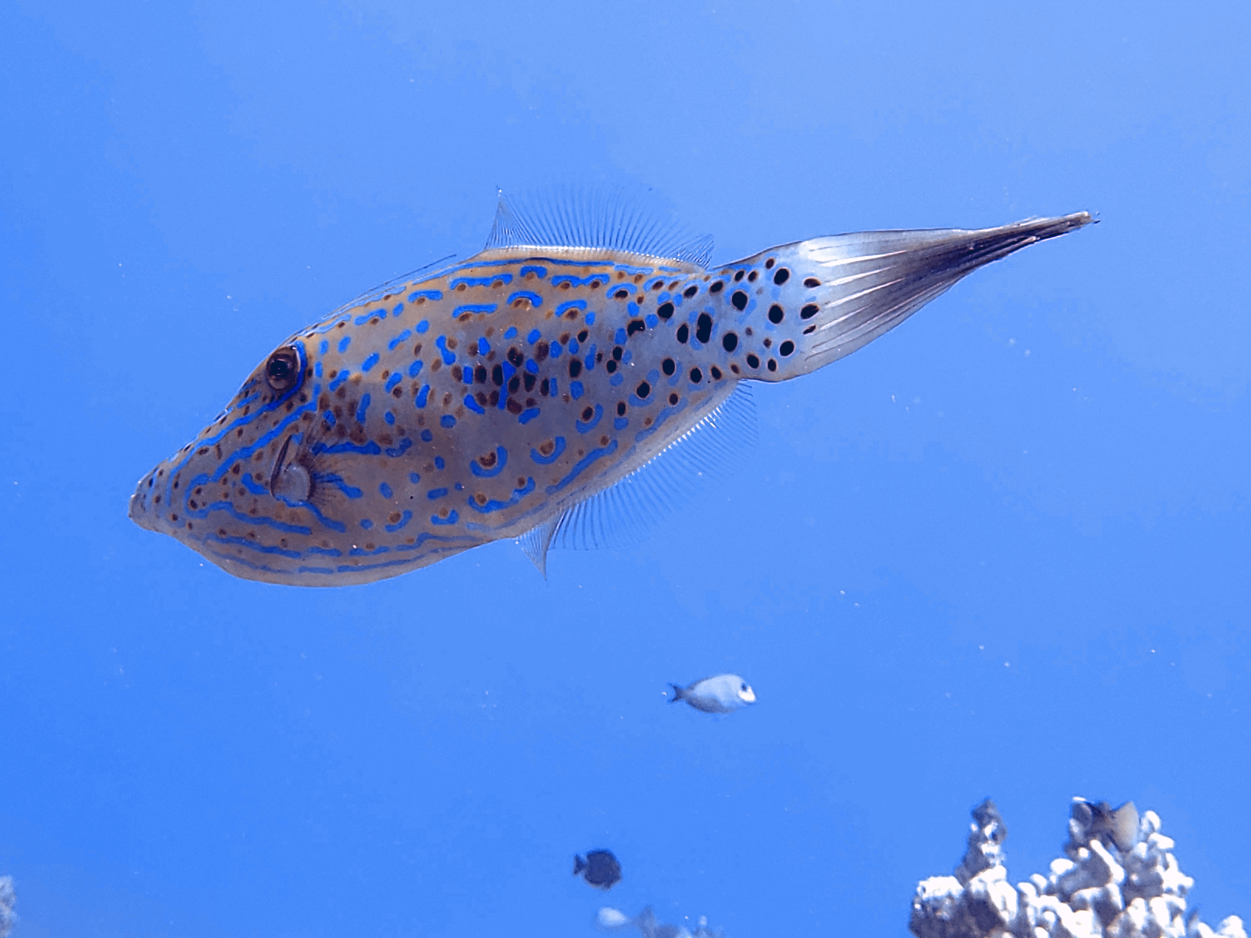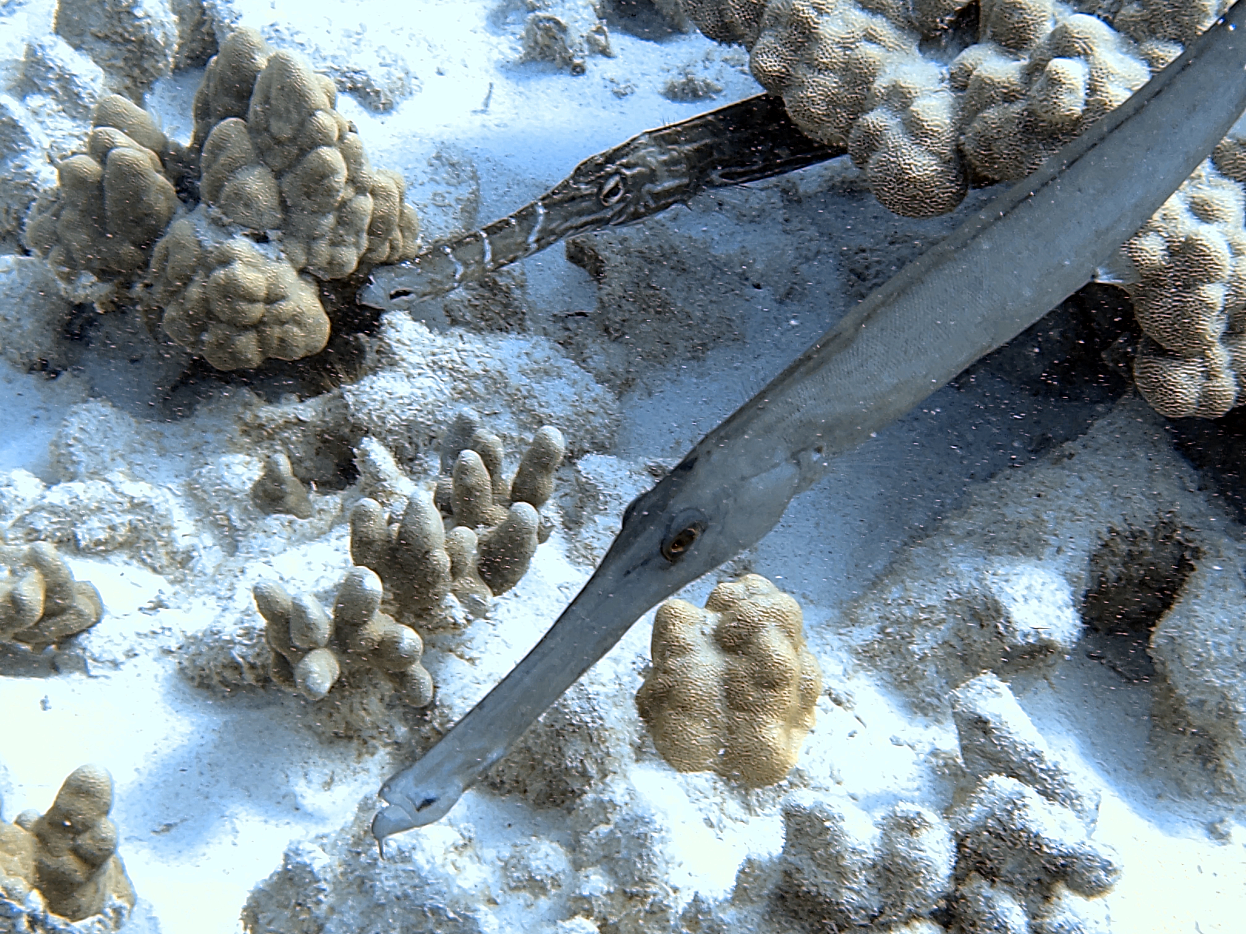 Above to the left is a baby razor wrasse. It’s only about an inch. In the middle is one that is a bit older. On the right is one that is older and about 6 inches.