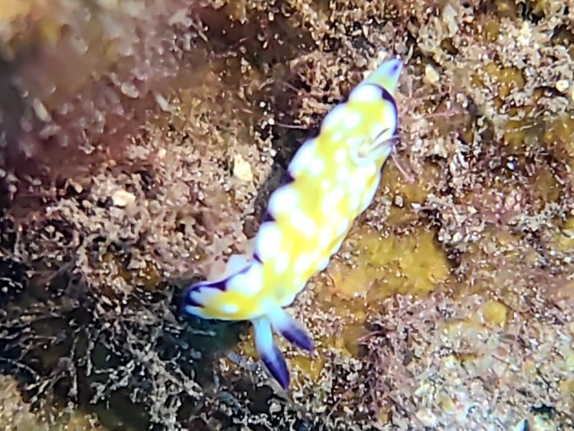 Nudibranchs are soft-bodied molluscs. I saw a huge number of them while diving on the Big Island in July. They are often hard to find because most are very small, an inch or even smaller. But it’s exciting when you spot one! Many of these photos were taken in caves, making it difficult to capture good shots. So apologies for any blurriness. Additionally, I have done my best to identify them, but I may have made a mistake. And I had to do the Pikachu twice. I had never seen one before, and we saw three on one wall!