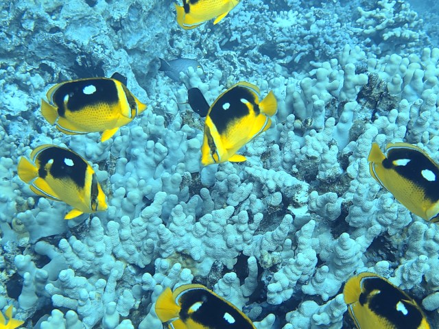 Some of the most beautiful fish we see diving in Hawaii are butterfly fish. They are colorful and very plentiful. There are so many that I sometimes forget to take pictures of them. But here are 14 different ones. Most are pretty common. Some are quite rare. I have also seen black long nose butterflies but I could not find a photo — for my next dives!