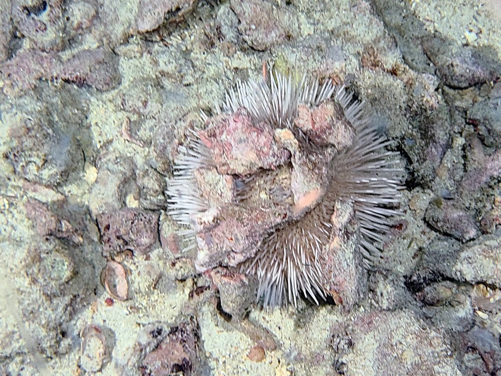 Above: Squid, white collector urchin, parrot fish, cup coral, ghost shrimp, manta ray.